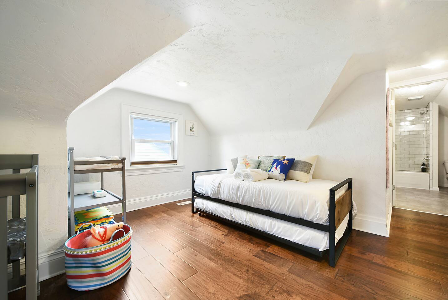 Rivers and Steel City Homes welcomes you to lovey, family friendly Aspinwall retreat. Featuring open style kitchen & living area is a perfect space to hang out, enjoy some food, and watch TV. Private parking on premises. Fully stocked with all basic cooking essentials, equipped with child play areas to keep them busy as you sort through getting ready for the days plans. We have included safety gates for your peace of mind. Traveling for work? High speed wifi, desk and light included.