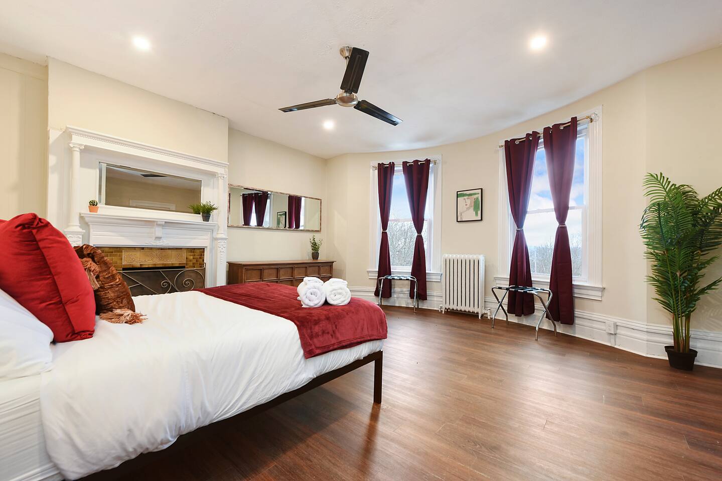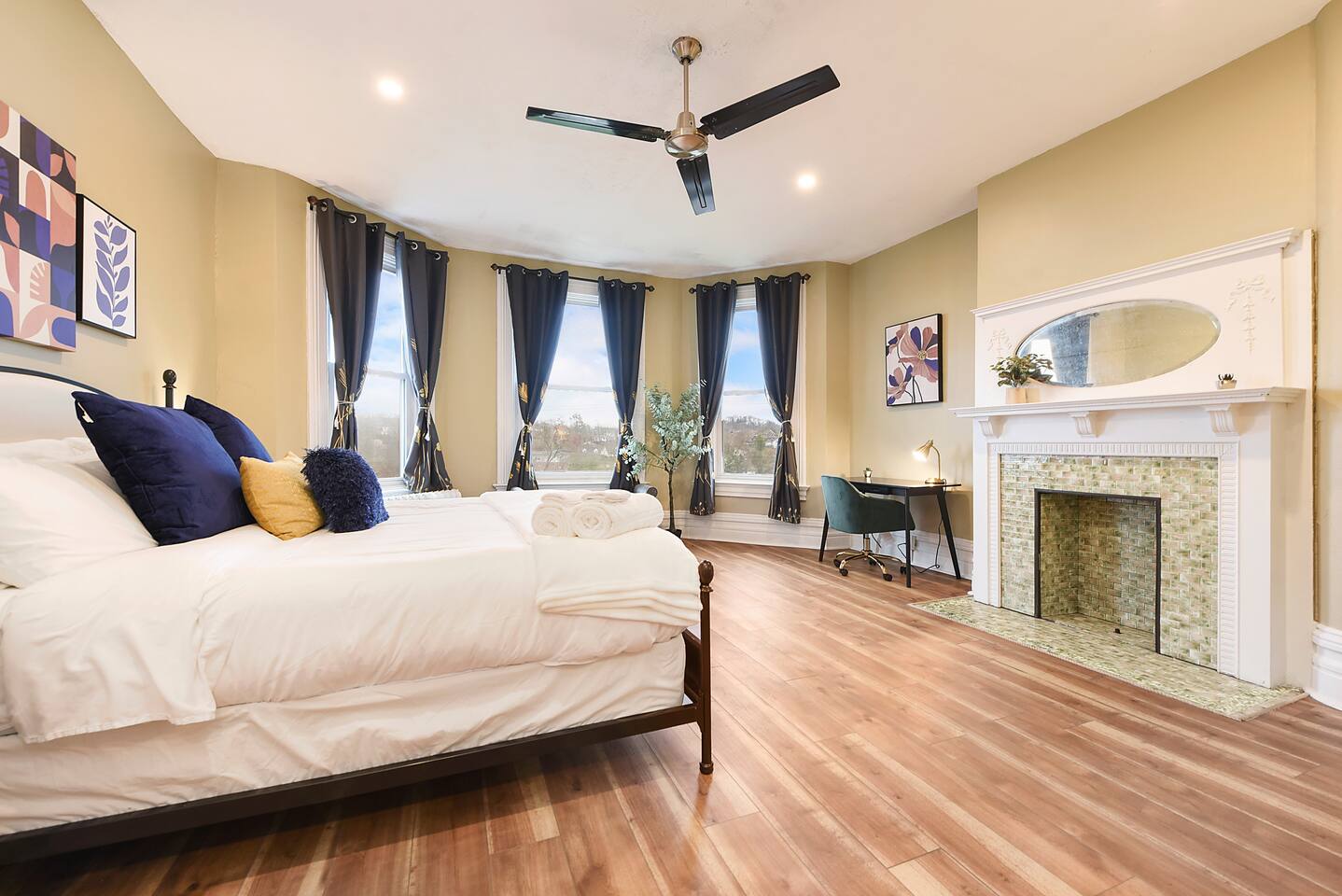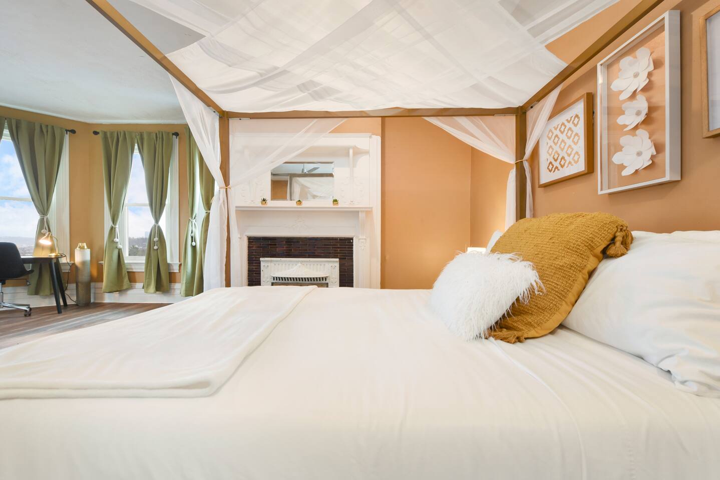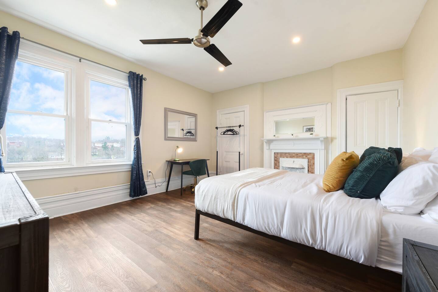 Rivers and Steel City Homes invites you to experience the grandeur of a bygone era with this fully furnished & stocked historic Pittsburgh Victorian Mansion, conveniently situated just moments away from downtown Pittsburgh. This majestic gem offers unparalleled size and sophistication, combined with modern amenities for an extremely comfortable and memorable trip. Large bedrooms with comfortable bedding, work desks and chairs, high speed WiFi, updated bathrooms with modern contemporary fixtures.