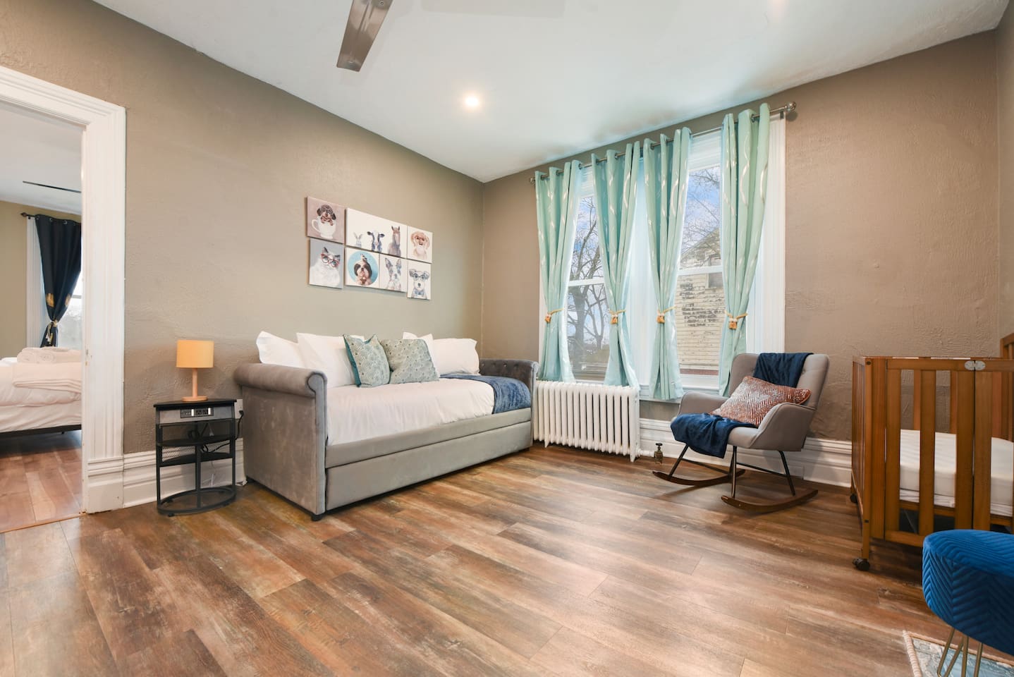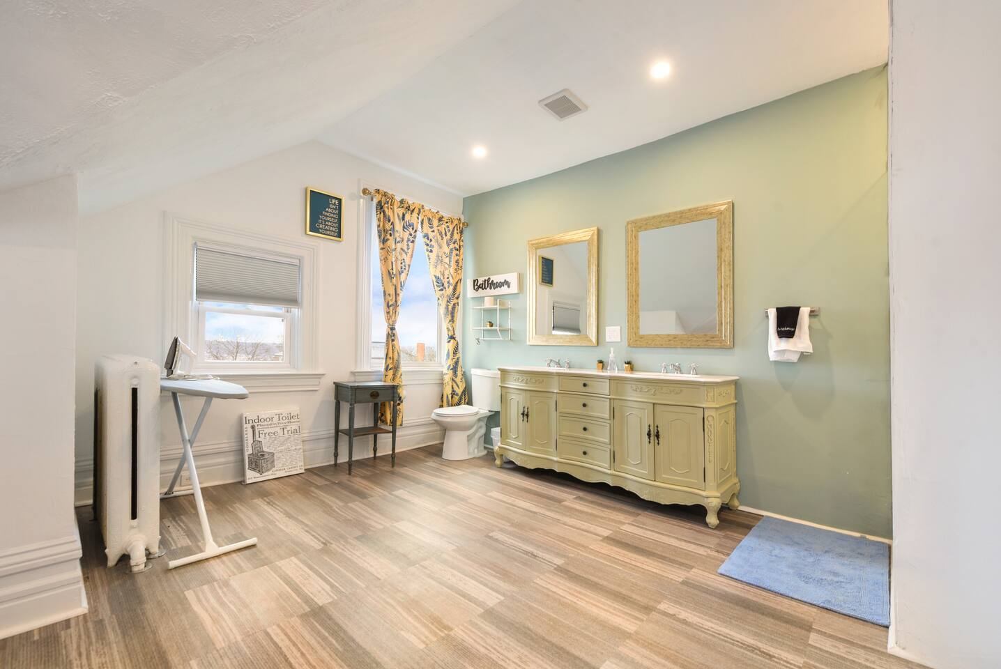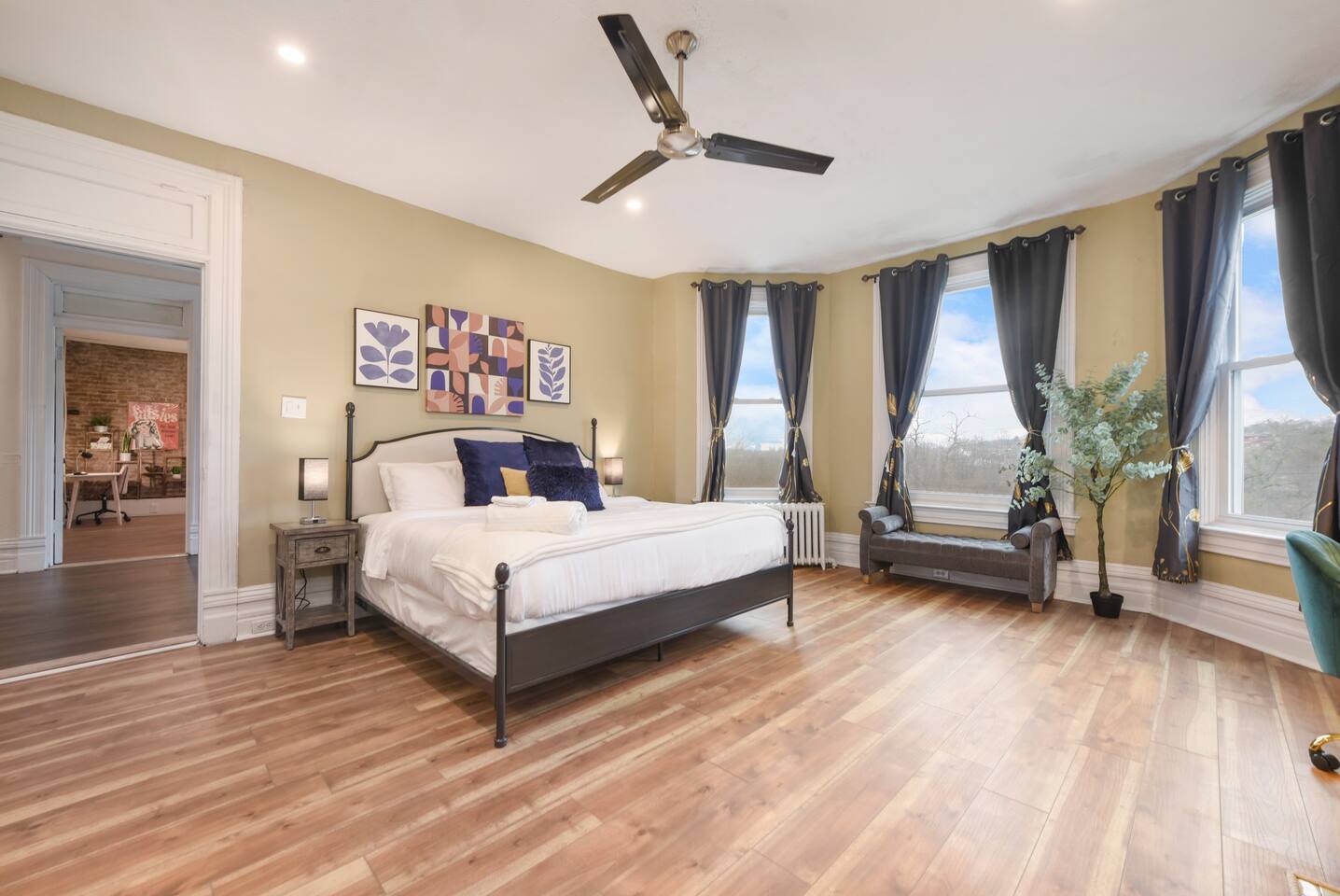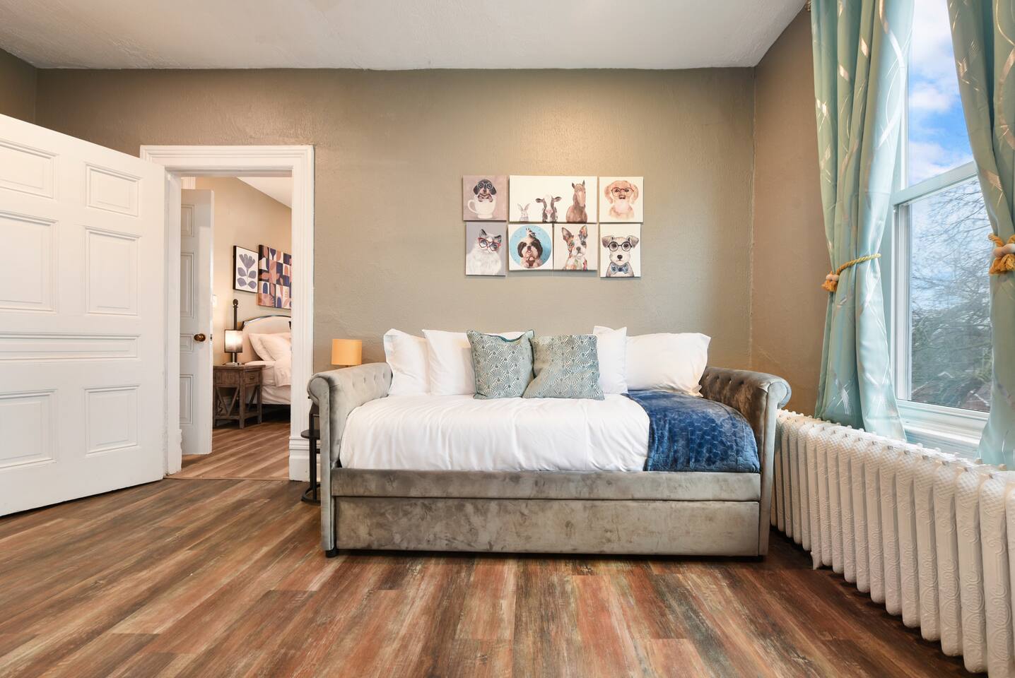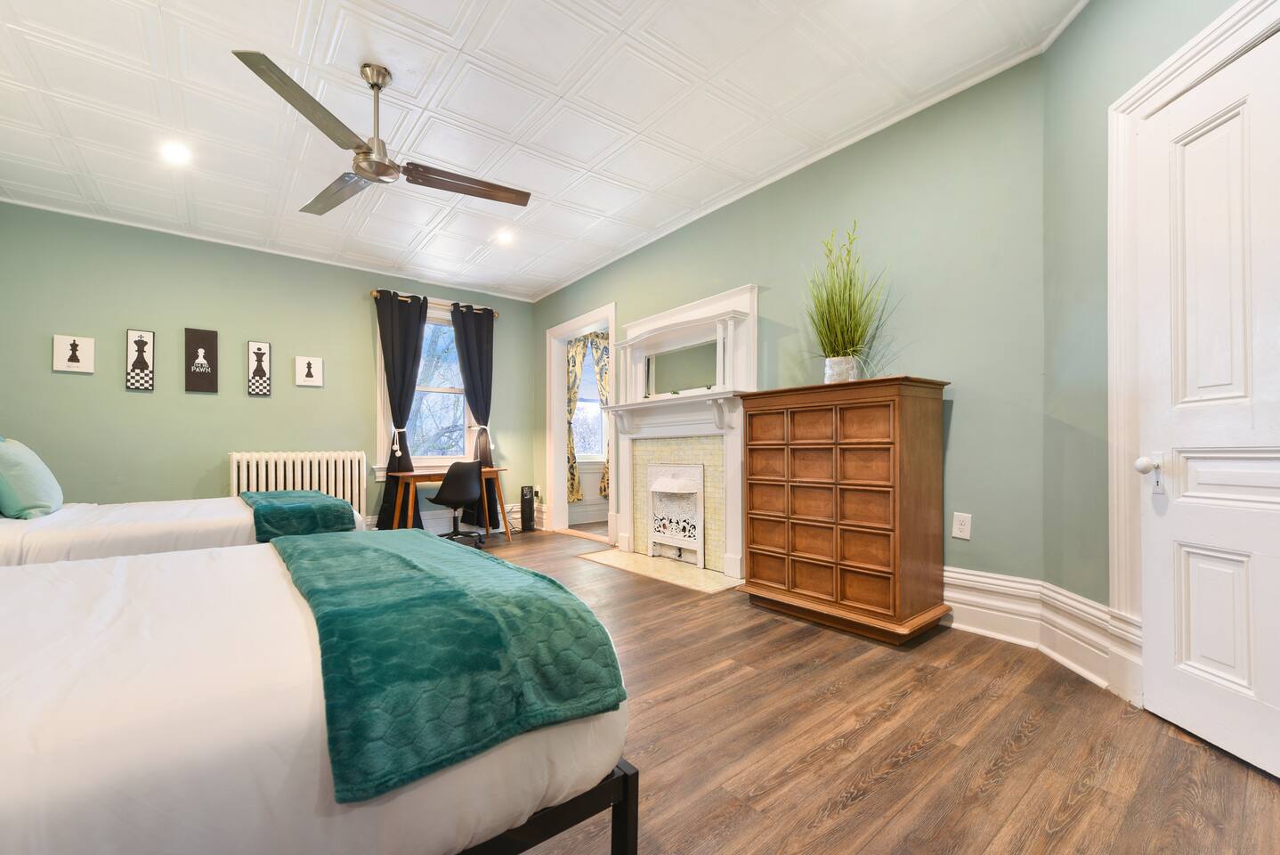 Rivers and Steel City Homes invites you to experience the grandeur of a bygone era with this fully furnished & stocked historic Pittsburgh Victorian Mansion, conveniently situated just moments away from downtown Pittsburgh. This majestic gem offers unparalleled size and sophistication, combined with modern amenities for an extremely comfortable and memorable trip. Large bedrooms with comfortable bedding, work desks and chairs, high speed WiFi, updated bathrooms with modern contemporary fixtures.