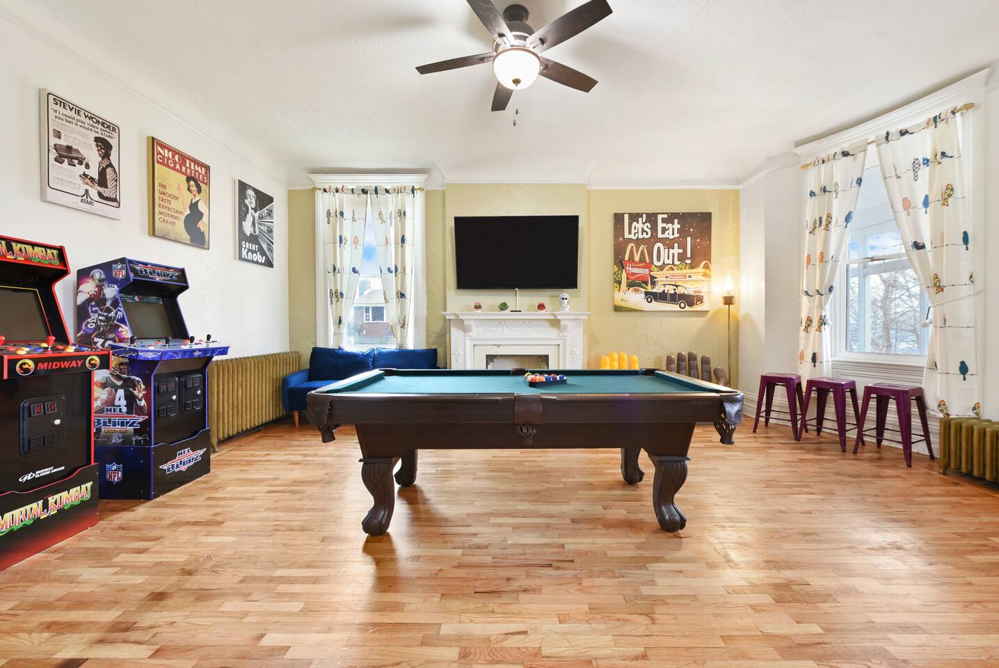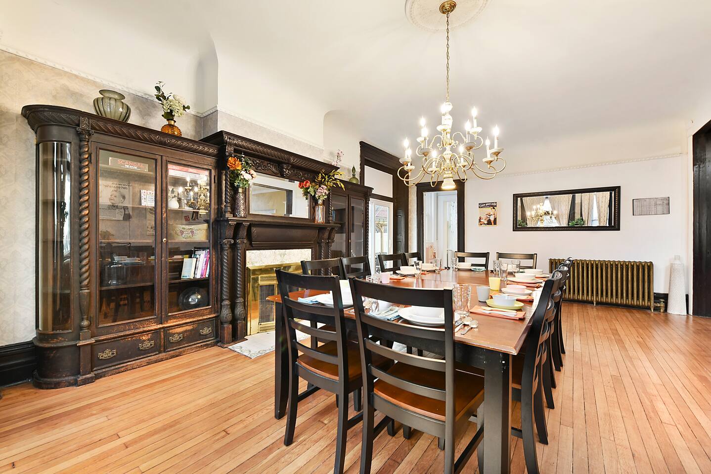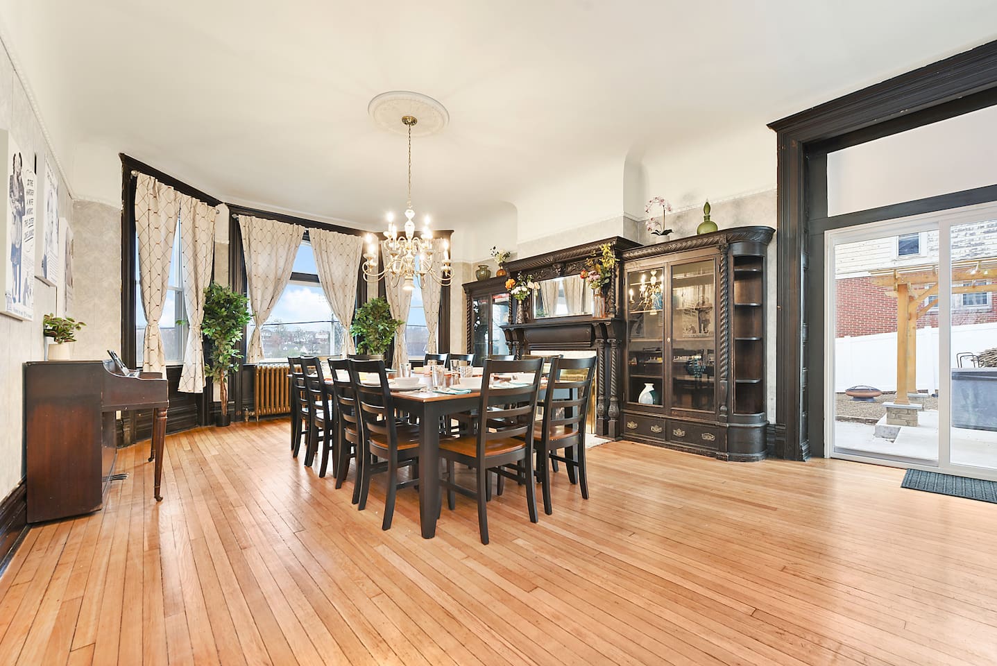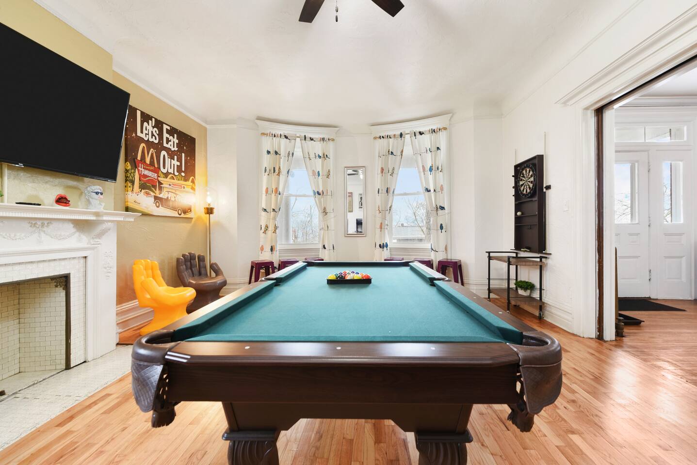 For a truly unforgettable, unique, and one of a kind an experience… Look no further than that of the Iams family's late 19th-century Victorian mansion. Imagine walking the grandeur halls through 3 floors of one of Pittsburgh most historic properties still running in service. Once home to Attorney Franklin Pierpoint Iams and Women’s reformer Lucy Dorsey Iams that dates back to the early 1890s! You will be marveled at this 8 bedroom, 5 full bathroom gem featuring a formal dining room for gatherings, with piano, game room featuring a pool table, dart board, video game cabinets and a backyard entertainment area featuring a large BBQ, Outdoor dining for 12, fire pit area, lounge area, hot tub and swing set property that will sleep up to 20! This property is massive and loaded with character and space for large gatherings for the entire family to span out all over the place! Perfect for… Family reunions Corporate retreats Golf outings Weddings Special occasions- wedding gathering per and post, baptisms, communions Movie, Filming and Photography *Please inquire about requirements and pricing for commercial gatherings Hand crafted fireplaces (non working) and tiled mantles over a century old throughout almost every room. Large original sliding doors between living spaces. Much of the classic trim work with some remaining wall imprints! Modern bathrooms with classic pieces. Nothing original here. This place was build before indoor bathrooms were a thing! A classic elegant pallet equipped with modern furnishings. Each room is unique in color, flooring, and character. This home that features classic Victorian architecture with ornate details was maintained as much possible with this 6,600 square feet, early 1890s behemoth that was originally built by Frank and Lucy Iams. Complete with old photos, historical write ups on them and their historical influence in the area, copies of US census surveys, etc. You will be marveled at their accomplishments. Our art work will take you down a stroll down time on memory lane, bringing you back to an era that is long gone! Let us know if you agree? 1st floor Interior Features: 2 entrance doors, on the front side you you will enter a over a grandeur wide staircase that will lead you up to the second and third floors. Formal elegant and spacious dining room seating area for 12 with classic chandelier dimmable LED Edison style candle bulbs. Lighting for that elegant look equipped with modern safety! This rooms also includes a piano for someone in your party to enhance the musical ambiance! There is a sliding door that leads you out to our completely equipped back patio and yard. 2 classic parlor rooms… Living room area with wrap around couch equipped with a 70” Roku and cable ready TV for the everyone to watch a movie, or the big game. Game room equipped with full size pool table, dart board, 4 classic arcade game cabinets that hold a total of over 200 games within them! A 65” Roku ready television perfect of having the game on while enjoying fun and games with family members, co workers, and loved ones. Fully equipped kitchen with stainless steel modern appliances, Keurig machine fully stocked with a variety of coffee pods. Spices, cookware, flatware, pots, pans, cooking utensils and much more! There is a second stairwell in the kitchen that goes to the second floor and a exit out to the back patio cooking area with a gas ready big BBQ for cooking. All of this connected by hallways large enough to drive a truck through! 2nd Floor Bedrooms Bedroom #1 Queen Bed w/ canopy, Jack and Jill bathroom, work desk and chair Bedroom #2 King bed , Trundle day bed (2 Twin)), with private balcony Jack and Jill bathroom, work desk and chair Bedroom #3 King Bed with connecting Kids room, work desk and chair Bedroom #4 Queen Bed, crib and changing table connecting full bathroom Floor includes laundry room with washer & dryer and drying rack 3rd Floor Bedrooms Bedroom #5 Queen Bed w/ canopy, work desk and chair Bedroom #6 2 x Queen Beds, baby crib work desk and chair Bedroom #7 2 x Full size beds with full bathroom ensuite including washer and dryer, work desk and chair Bedroom #8 King Bed, Trundle day bed (2 Twins), work desk and chair Floor includes additional common space full bathroom Exterior Features: Picturesque Victorian Facade Well-Maintained Grounds Relaxing Outdoor Spaces Large Patio with Outdoor table seating for 12 Fire pit with chopped wood for burning Large wooden deck with canopy and lounge seating Swing set for your children’s enjoyment 6 person hot tub Wrap around porch with 2 separate porch swings and lounge seating area Additional Amenities: Laundry Facilities On-Site Close Proximity to Downtown Pittsburgh Attractions, Restaurants, and Shops Easy Access to Public Transportation and Major Highways Professional Cleaning Services Available Ideal for: Short Term Vacation Rentals Family Retreats Golf Outings Corporate Housing Special Events or Gatherings Film and Photo Shoots Travelers Seeking a Unique and Memorable Experience Experience the elegance and charm of this beautifully restored Victorian mansion during your stay in Pittsburgh. Book now to secure your dates and create lasting memories in this historic home