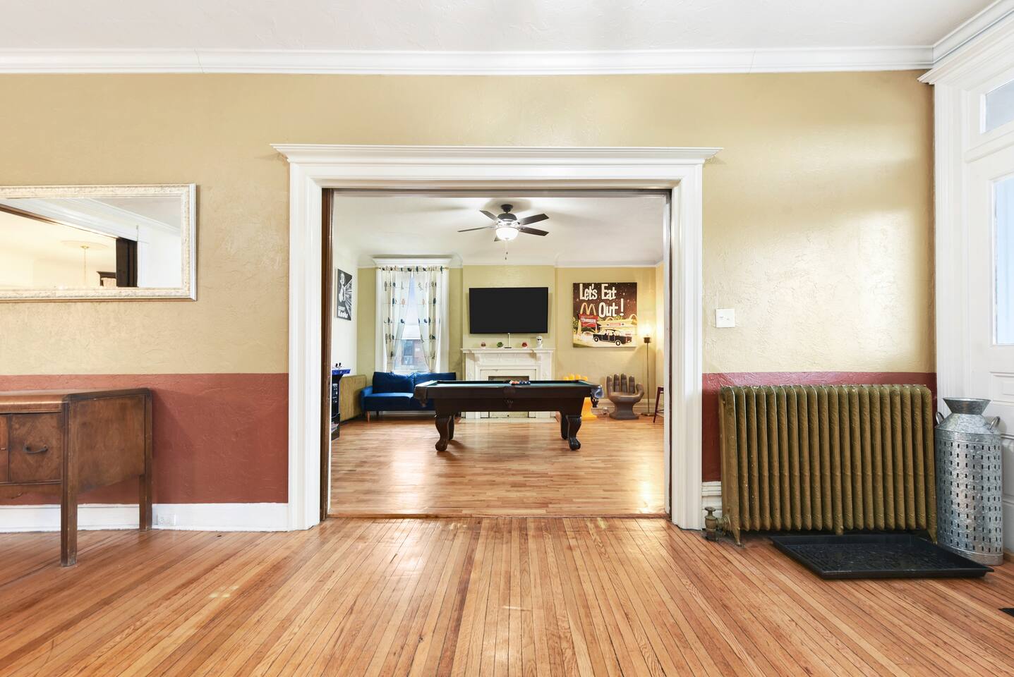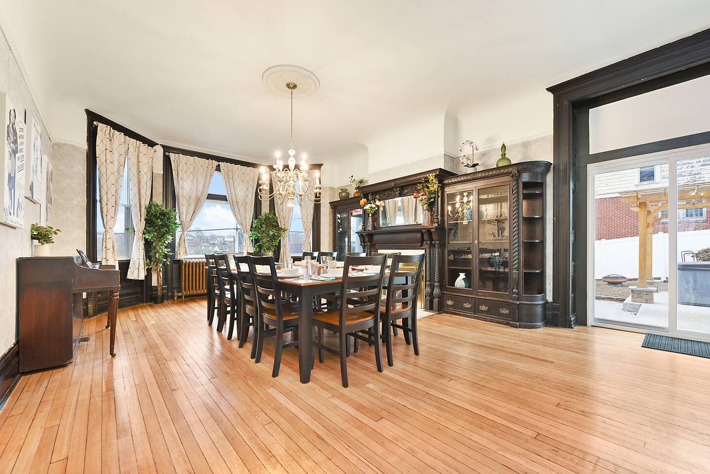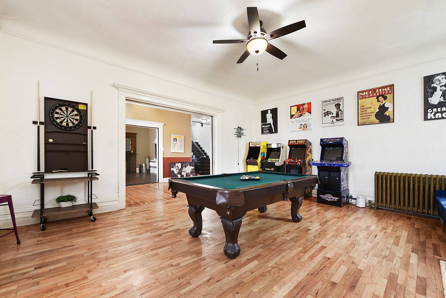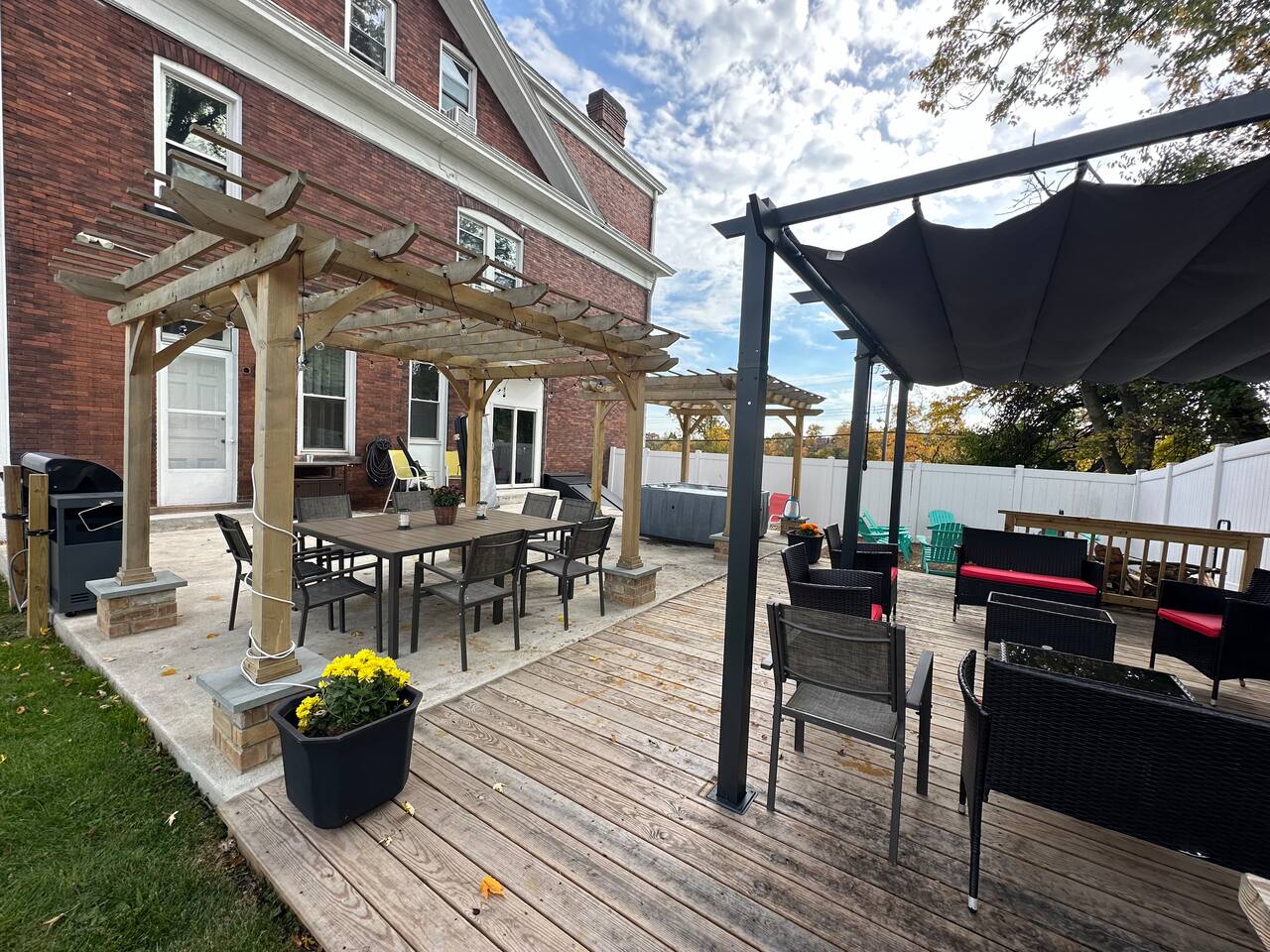 For a truly unforgettable, unique, and one of a kind an experience… Look no further than that of the Iams family's late 19th-century Victorian mansion. Imagine walking the grandeur halls through 3 floors of one of Pittsburgh most historic properties still running in service. Once home to Attorney Franklin Pierpoint Iams and Women’s reformer Lucy Dorsey Iams that dates back to the early 1890s! You will be marveled at this 8 bedroom, 5 full bathroom gem featuring a formal dining room for gatherings, with piano, game room featuring a pool table, dart board, video game cabinets and a backyard entertainment area featuring a large BBQ, Outdoor dining for 12, fire pit area, lounge area, hot tub and swing set property that will sleep up to 20! This property is massive and loaded with character and space for large gatherings for the entire family to span out all over the place! Perfect for… Family reunions Corporate retreats Golf outings Weddings Special occasions- wedding gathering per and post, baptisms, communions Movie, Filming and Photography *Please inquire about requirements and pricing for commercial gatherings Hand crafted fireplaces (non working) and tiled mantles over a century old throughout almost every room. Large original sliding doors between living spaces. Much of the classic trim work with some remaining wall imprints! Modern bathrooms with classic pieces. Nothing original here. This place was build before indoor bathrooms were a thing! A classic elegant pallet equipped with modern furnishings. Each room is unique in color, flooring, and character. This home that features classic Victorian architecture with ornate details was maintained as much possible with this 6,600 square feet, early 1890s behemoth that was originally built by Frank and Lucy Iams. Complete with old photos, historical write ups on them and their historical influence in the area, copies of US census surveys, etc. You will be marveled at their accomplishments. Our art work will take you down a stroll down time on memory lane, bringing you back to an era that is long gone! Let us know if you agree? 1st floor Interior Features: 2 entrance doors, on the front side you you will enter a over a grandeur wide staircase that will lead you up to the second and third floors. Formal elegant and spacious dining room seating area for 12 with classic chandelier dimmable LED Edison style candle bulbs. Lighting for that elegant look equipped with modern safety! This rooms also includes a piano for someone in your party to enhance the musical ambiance! There is a sliding door that leads you out to our completely equipped back patio and yard. 2 classic parlor rooms… Living room area with wrap around couch equipped with a 70” Roku and cable ready TV for the everyone to watch a movie, or the big game. Game room equipped with full size pool table, dart board, 4 classic arcade game cabinets that hold a total of over 200 games within them! A 65” Roku ready television perfect of having the game on while enjoying fun and games with family members, co workers, and loved ones. Fully equipped kitchen with stainless steel modern appliances, Keurig machine fully stocked with a variety of coffee pods. Spices, cookware, flatware, pots, pans, cooking utensils and much more! There is a second stairwell in the kitchen that goes to the second floor and a exit out to the back patio cooking area with a gas ready big BBQ for cooking. All of this connected by hallways large enough to drive a truck through! 2nd Floor Bedrooms Bedroom #1 Queen Bed w/ canopy, Jack and Jill bathroom, work desk and chair Bedroom #2 King bed , Trundle day bed (2 Twin)), with private balcony Jack and Jill bathroom, work desk and chair Bedroom #3 King Bed with connecting Kids room, work desk and chair Bedroom #4 Queen Bed, crib and changing table connecting full bathroom Floor includes laundry room with washer & dryer and drying rack 3rd Floor Bedrooms Bedroom #5 Queen Bed w/ canopy, work desk and chair Bedroom #6 2 x Queen Beds, baby crib work desk and chair Bedroom #7 2 x Full size beds with full bathroom ensuite including washer and dryer, work desk and chair Bedroom #8 King Bed, Trundle day bed (2 Twins), work desk and chair Floor includes additional common space full bathroom Exterior Features: Picturesque Victorian Facade Well-Maintained Grounds Relaxing Outdoor Spaces Large Patio with Outdoor table seating for 12 Fire pit with chopped wood for burning Large wooden deck with canopy and lounge seating Swing set for your children’s enjoyment 6 person hot tub Wrap around porch with 2 separate porch swings and lounge seating area Additional Amenities: Laundry Facilities On-Site Close Proximity to Downtown Pittsburgh Attractions, Restaurants, and Shops Easy Access to Public Transportation and Major Highways Professional Cleaning Services Available Ideal for: Short Term Vacation Rentals Family Retreats Golf Outings Corporate Housing Special Events or Gatherings Film and Photo Shoots Travelers Seeking a Unique and Memorable Experience Experience the elegance and charm of this beautifully restored Victorian mansion during your stay in Pittsburgh. Book now to secure your dates and create lasting memories in this historic home
